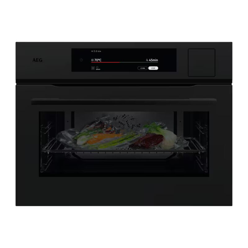 Four encastrable vapeur compact AEG NKP9S821T Série 9000 MealAssist, SteamPro®, niche 45 cm, cuisson vapeur et chaleur tournante, CookSmart Touch+, sonde de cuisson et connectivité Wi-Fi.