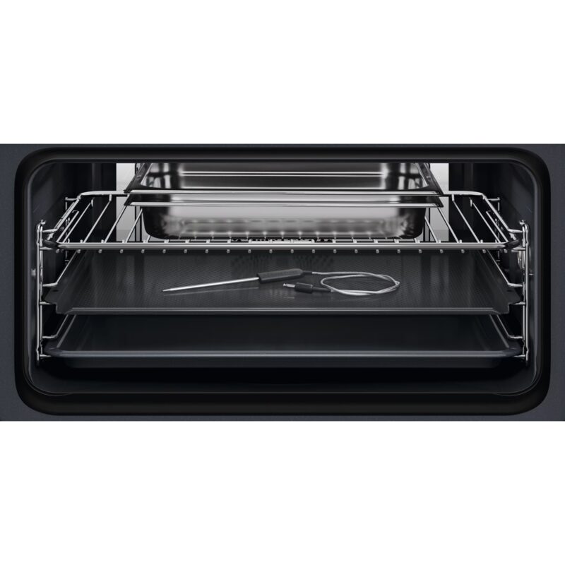 La fonction AssistedCooking ajuste automatiquement les paramètres de cuisson selon le plat sélectionné. La sonde de cuisson intégrée mesure la température à cœur pour un contrôle précis, notamment pour les cuissons basse température et sous-vide.