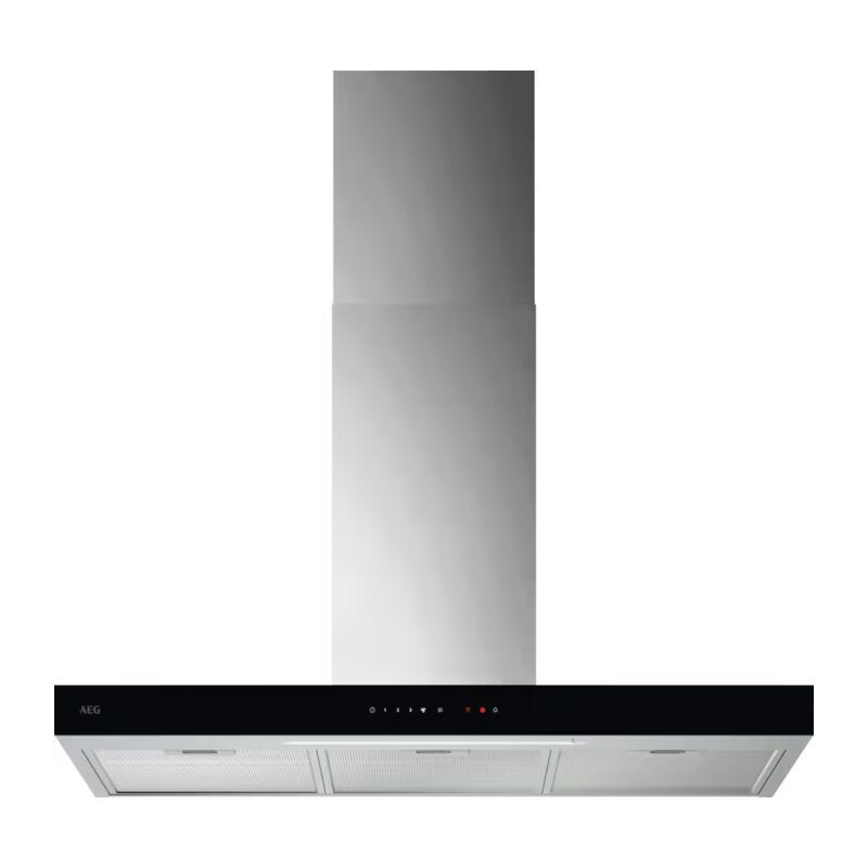 Hotte décorative murale AEG GB67D91HL 90 cm Série 6000, Hob2Hood®, ExtractionTech Pro, 3 vitesses + intensive + Breeze, éclairage LED et fonctionnement évacuation ou recyclage.