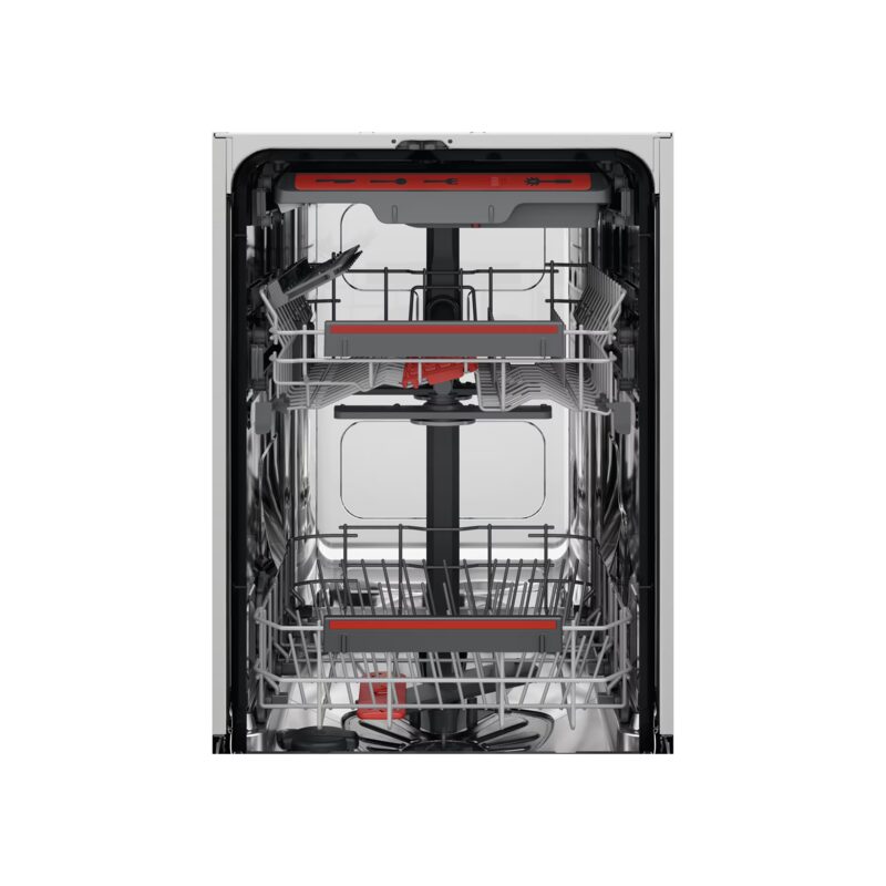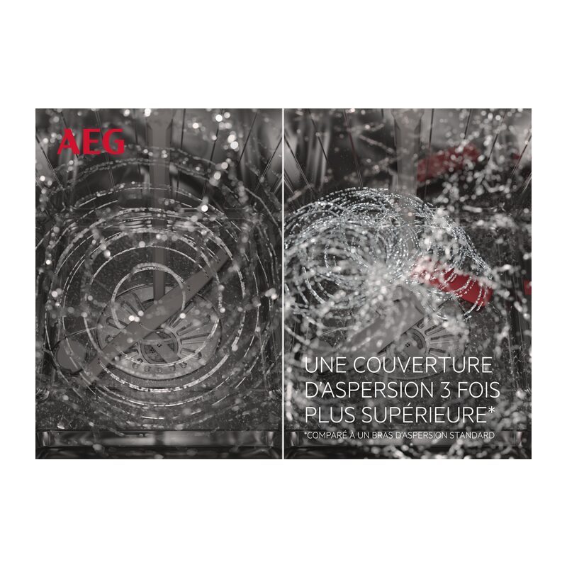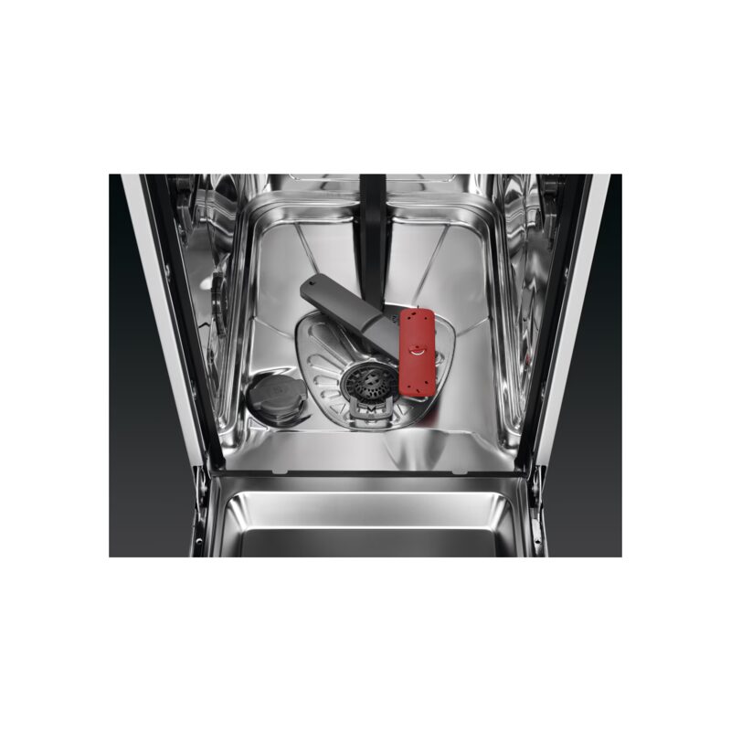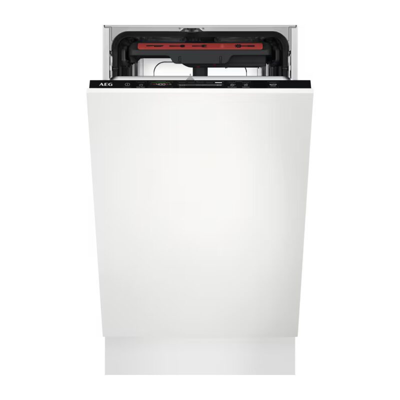 Lave-vaisselle AEG tout intégrable 45 cm – 10 couverts avec technologie SatelliteClean® offrant une couverture de lavage jusqu’à 3 fois supérieure.