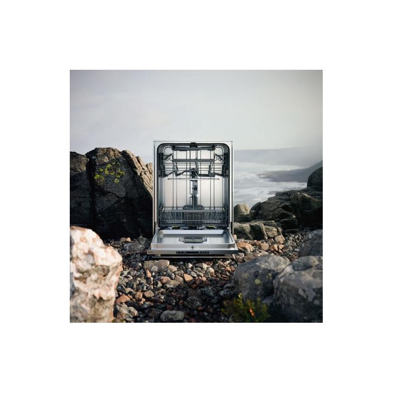 Lave-vaisselle premium XL 14 couverts, 39 dB, système 9 Spray™, Turbo séchage combiné, dosage automatique, paniers acier exclusifs, tiroir à couverts, Status Light™ et Aqua Safe™.