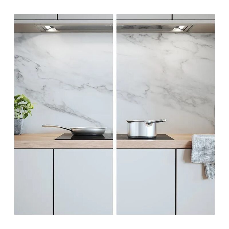 Les deux foyers carrés Real Bridge™ 210 × 190 mm situés à droite peuvent fonctionner séparément ou être réunis pour accueillir de grands récipients.