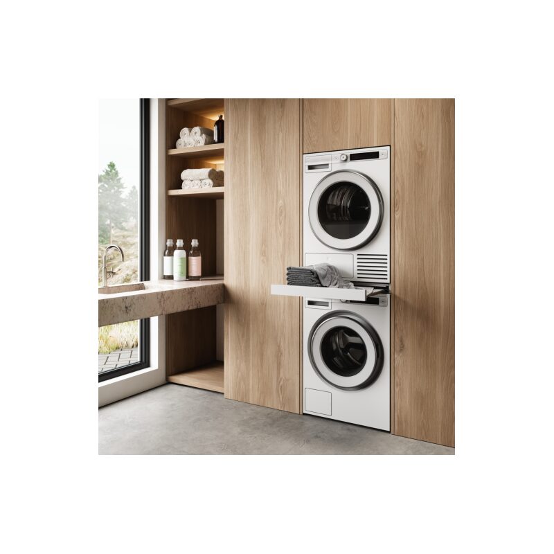 La tablette coulissante ASKO HS60W est un accessoire pratique conçu pour améliorer votre confort au quotidien. Installée entre un lave-linge et un sèche-linge, elle offre une surface stable et accessible pour manipuler le linge facilement.