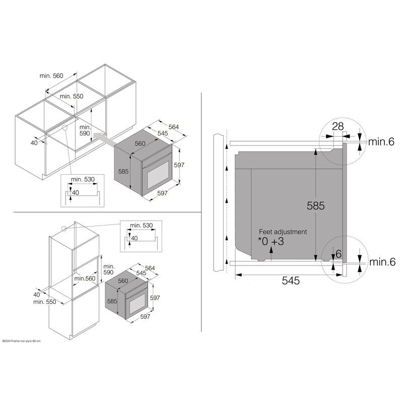 Avec ses dimensions 597 x 597 x 564 mm, ce four s’intègre parfaitement dans une niche standard (560 x 590 mm).