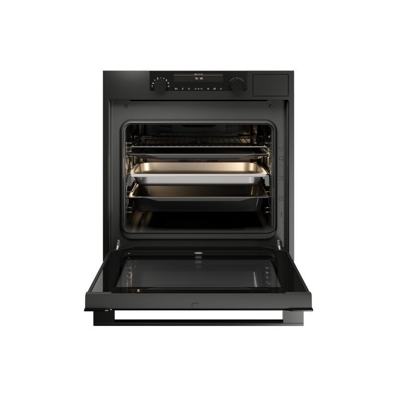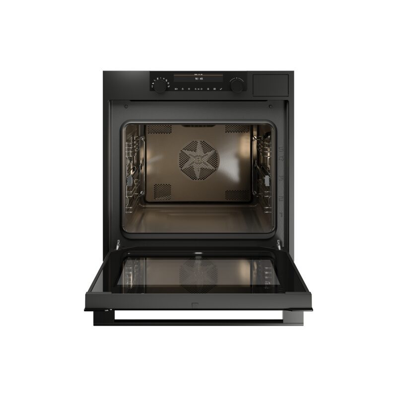 Le four Asko OCS8687A1 associe cuisson vapeur et chaleur tournante dans une cavité de 73 L. Son design noir graphite mat, sa porte vitrocéramique et son système Auto Door en font un appareil haut de gamme pensé pour la précision et le confort.