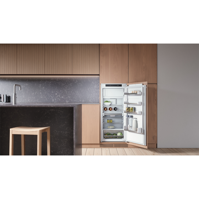 Le réfrigérateur encastrable Asko RFB31231EI offre une niche 122 cm, env. 180 L utiles, un compartiment 4★ et des charnières pantographes pour une intégration parfaite. Un design scandinave sobre et durable, signé Asko.