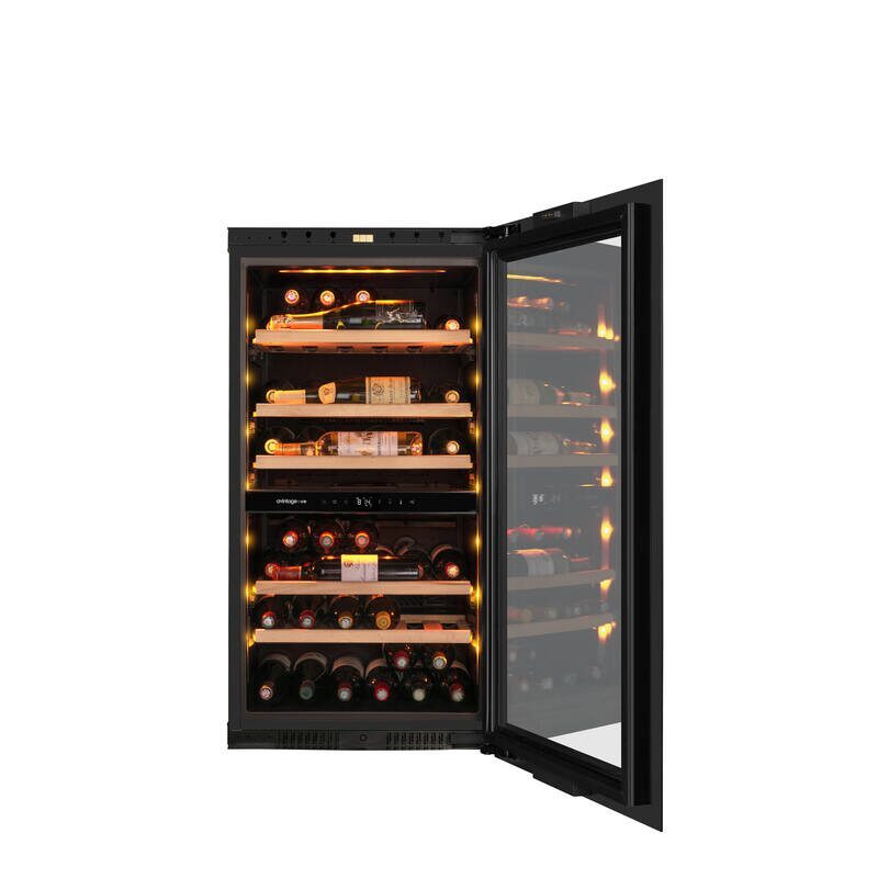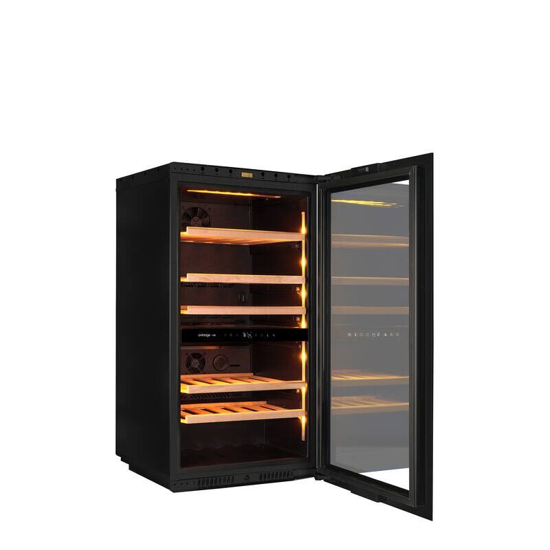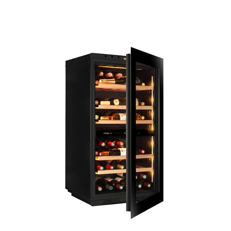 Les deux zones de température permettent d’adapter précisément la conservation et le service des vins. La plage de réglage s’étend de 5 à 20 °C, avec une zone supérieure réglable de 5 à 12 °C et une zone inférieure de 12 à 20 °C, pour répondre aux besoins de différents crus.