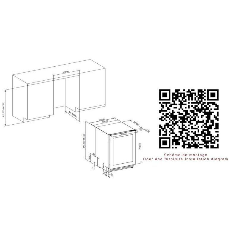 La cave à vin Avintage AVU50PANEL est conçue pour une intégration sous plan avec porte habillable. Son système d’ouverture électronique push-pull permet une façade sans poignée, parfaitement alignée avec le mobilier de cuisine.