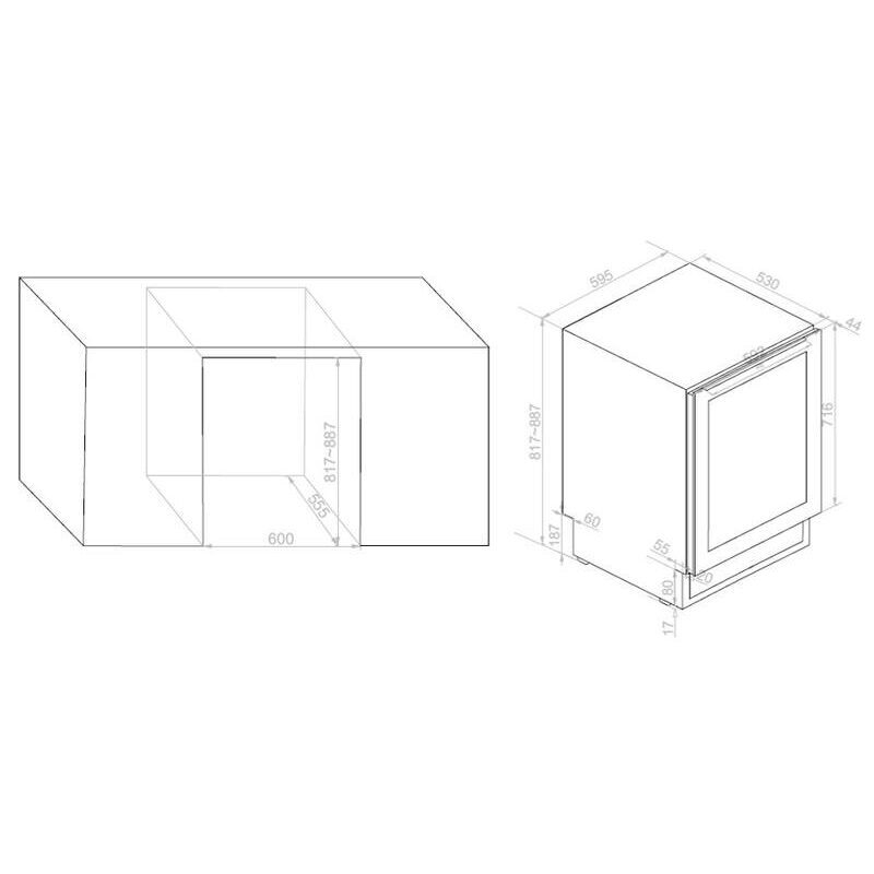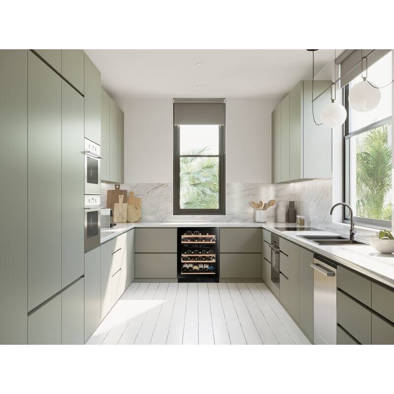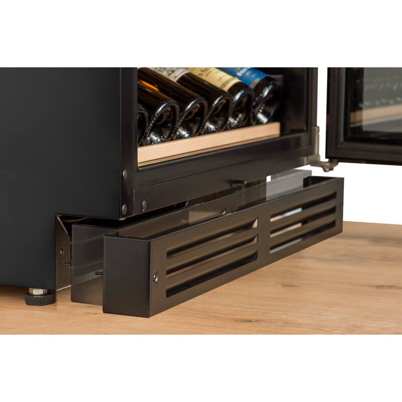 La cave à vin Avintage AVU51D82 est conçue pour une intégration sous plan de travail de 60 cm. Sa hauteur de 82 cm, sa poignée discrète positionnée sous le plan et sa ventilation frontale facilitent l’installation et garantissent une intégration soignée dans le mobilier de cuisine.