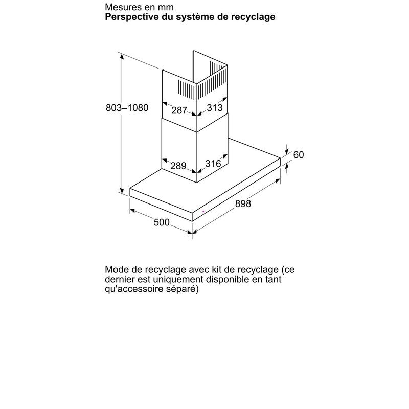 Cette hotte murale s’installe en évacuation ou en recyclage selon votre configuration :