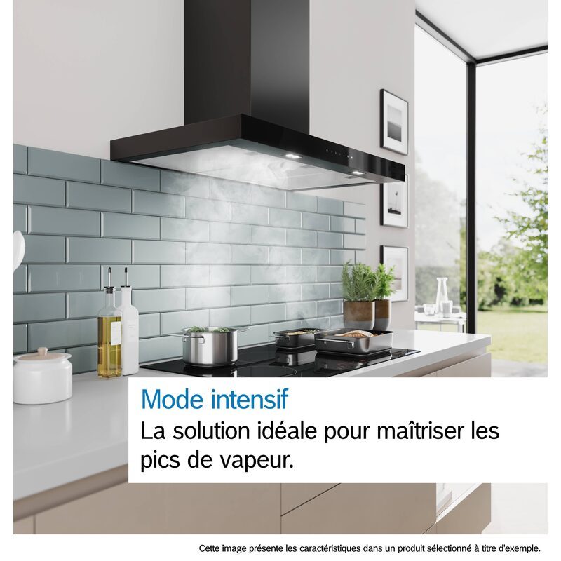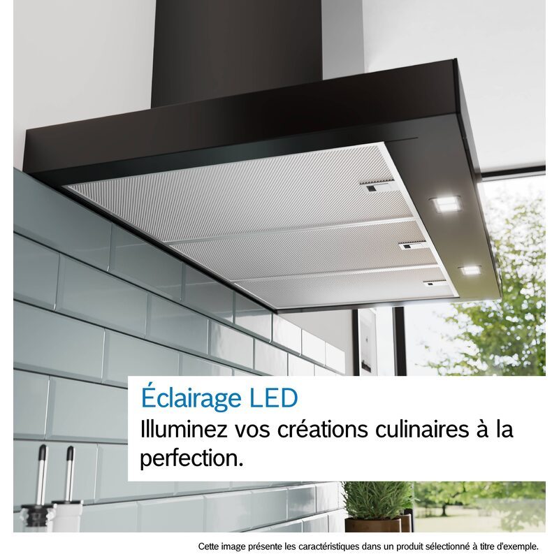 Cette hotte Bosch offre une largeur de 90 cm, un débit jusqu’à 699 m³/h en intensif et un fonctionnement silencieux.