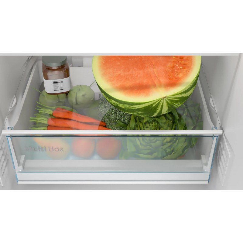 L’intérieur du réfrigérateur dispose de 3 clayettes en verre de sécurité, dont 2 réglables en hauteur, ainsi que de balconnets de porte pour organiser facilement vos aliments. Le compartiment MultiBox transparent est idéal pour le stockage des fruits et légumes.