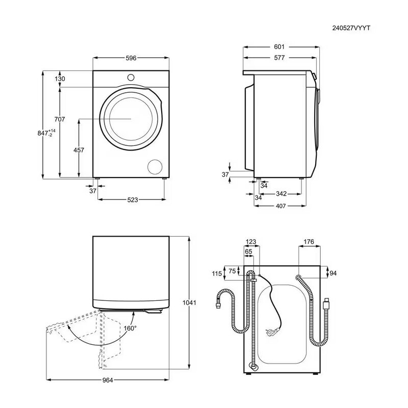 Dimensions (HxLxP) : 847 × 596 × 547–576 mm.