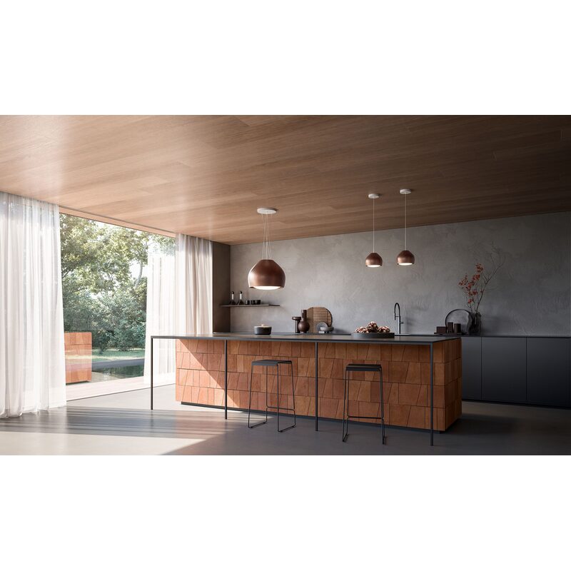La Falmec SOPHIE 2240 est une hotte îlot design équipée de la technologie Circle.Tech, qui combine moteur et filtration dans un ensemble compact. Sa finition en acier verni laiton antique apporte une touche décorative forte, parfaite pour les cuisines premium.