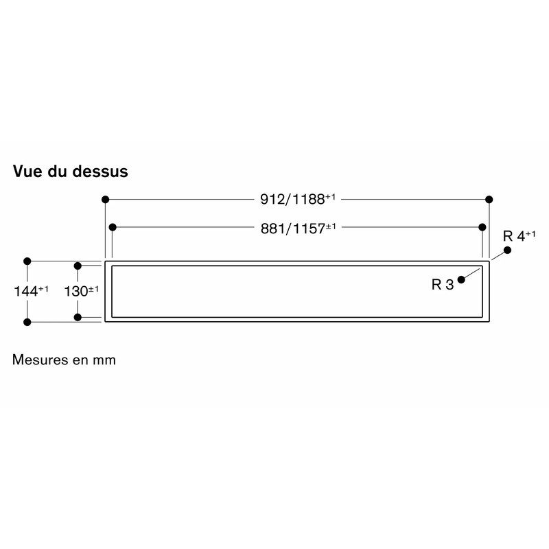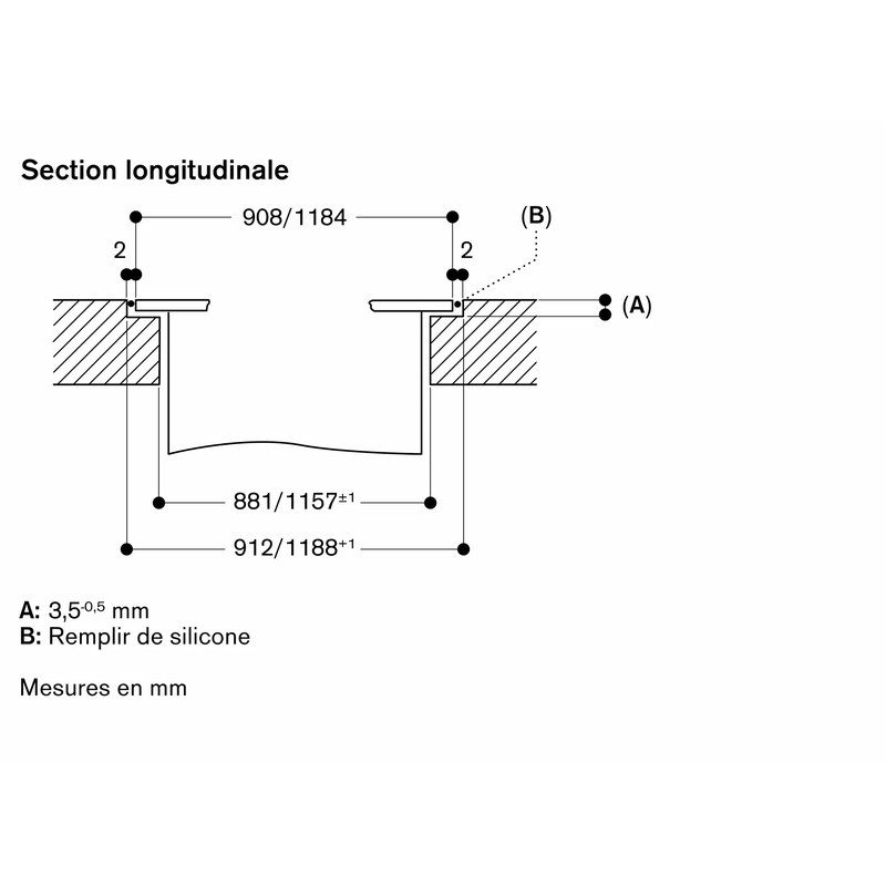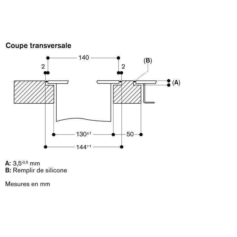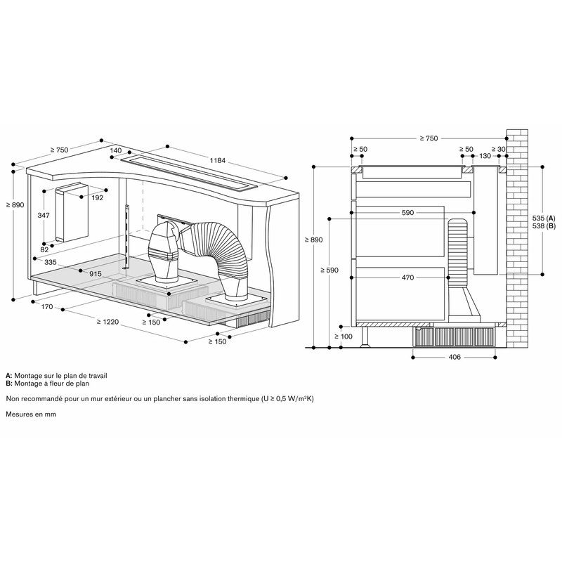 La hotte doit être installée dans une découpe séparée du plan de travail.