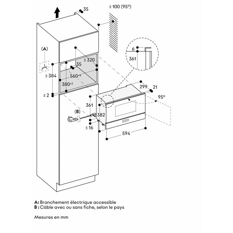 Installation possible en colonne ou dans un meuble haut, avec pose à fleur pour une intégration parfaite.