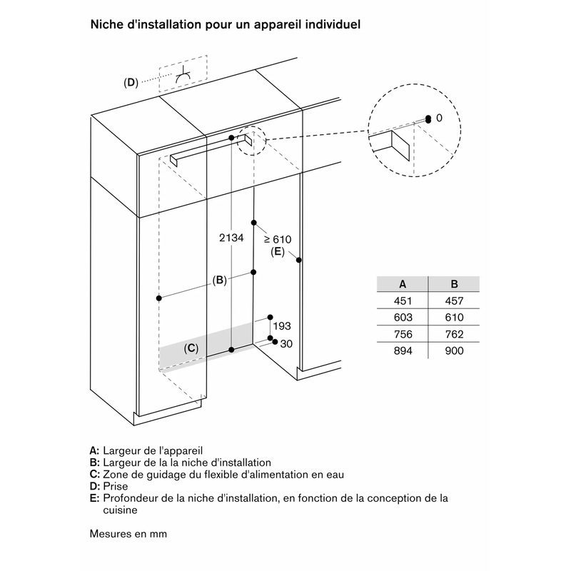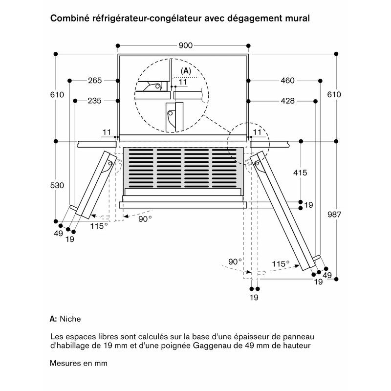 Angle d’ouverture de porte : 115°, blocable à 90°.