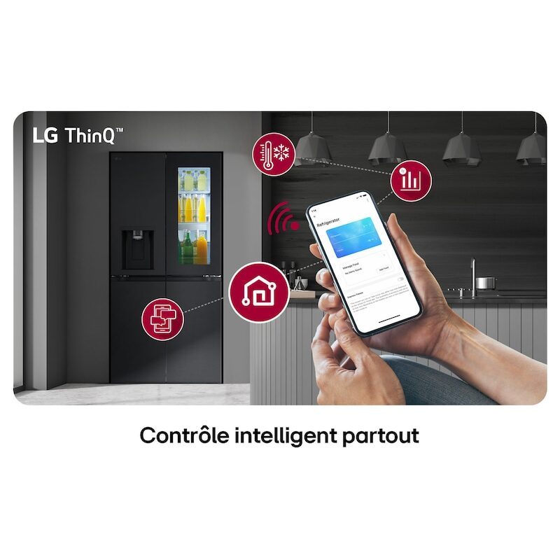 Grâce à la connectivité LG ThinQ™, ce réfrigérateur peut être contrôlé et surveillé à distance via Wi-Fi.
