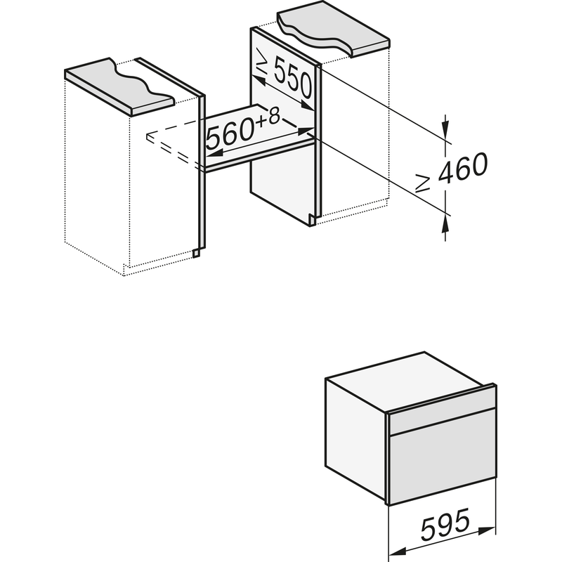 Dimensions de niche (H × L × P) : 450–452 × 560–568 × 550 mm.