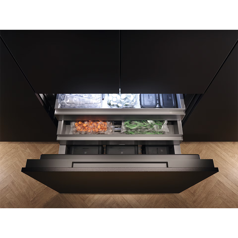Le Miele KFMC 3844 FD appartient à la collection MasterCool, la gamme de froid la plus prestigieuse de Miele. Avec son format FrenchDoor XXL de 576 L, ses matériaux haut de gamme et ses technologies exclusives comme MasterFresh Pro, FoodView ou DuplexCool Pro, il offre une conservation optimale, un confort exceptionnel et une intégration parfaite dans les cuisines premium.