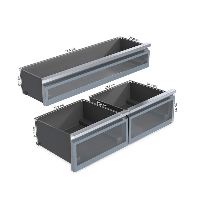 • 3 tiroirs dont 2 sur glissières télescopiques