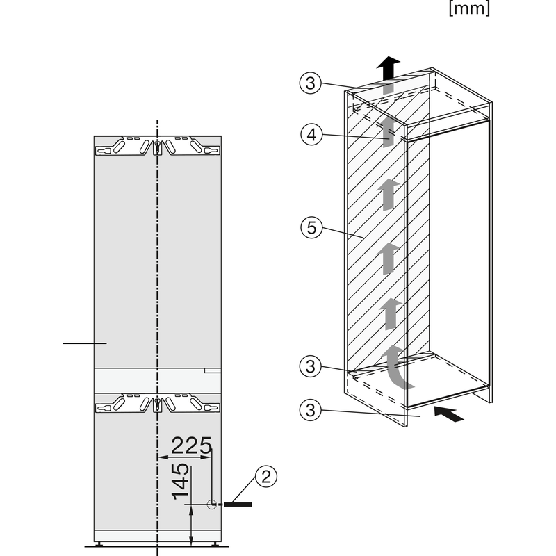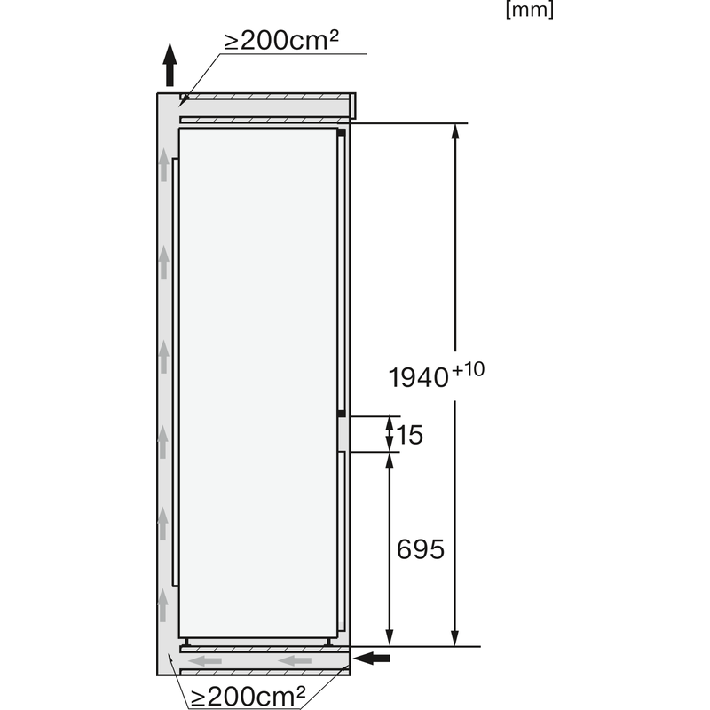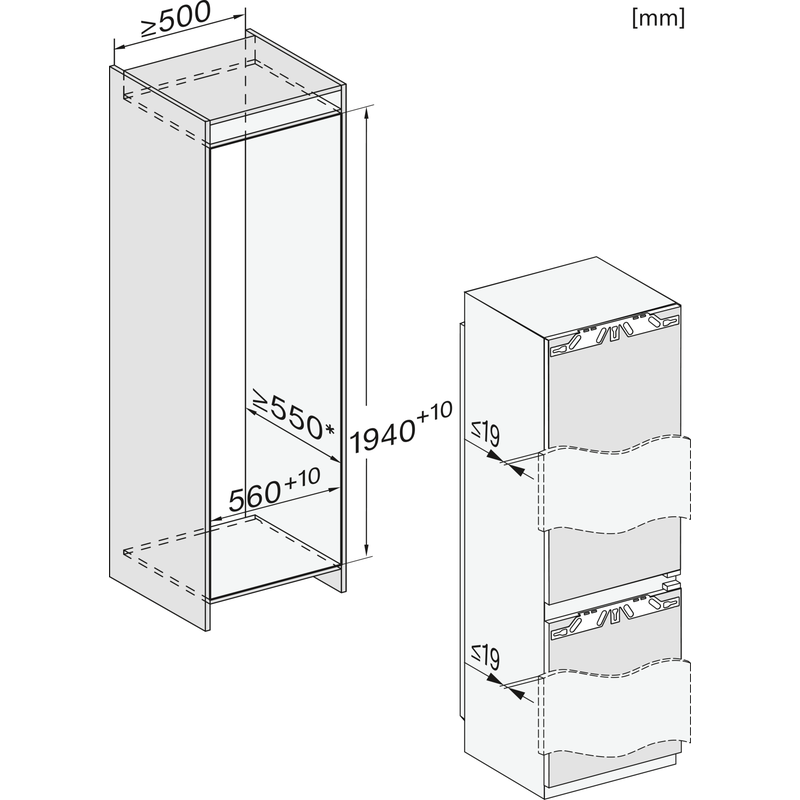 Ce modèle s’intègre dans une niche de 194 à 195 cm avec une largeur de 560 à 570 mm et une profondeur de 550 mm. Son système de fixation porte fixe assure une intégration parfaite dans votre cuisine.
