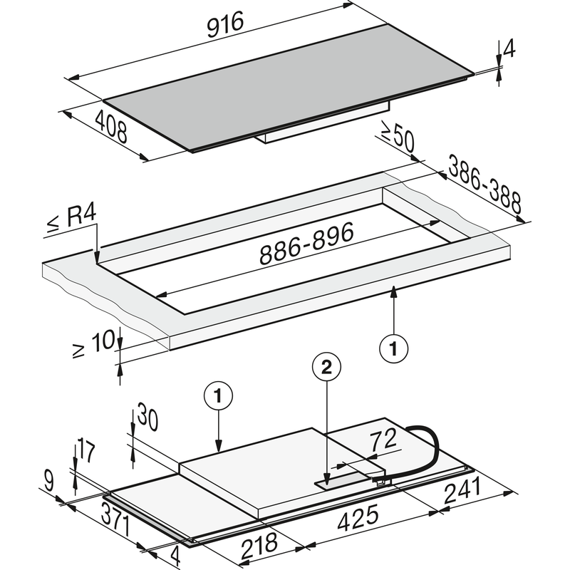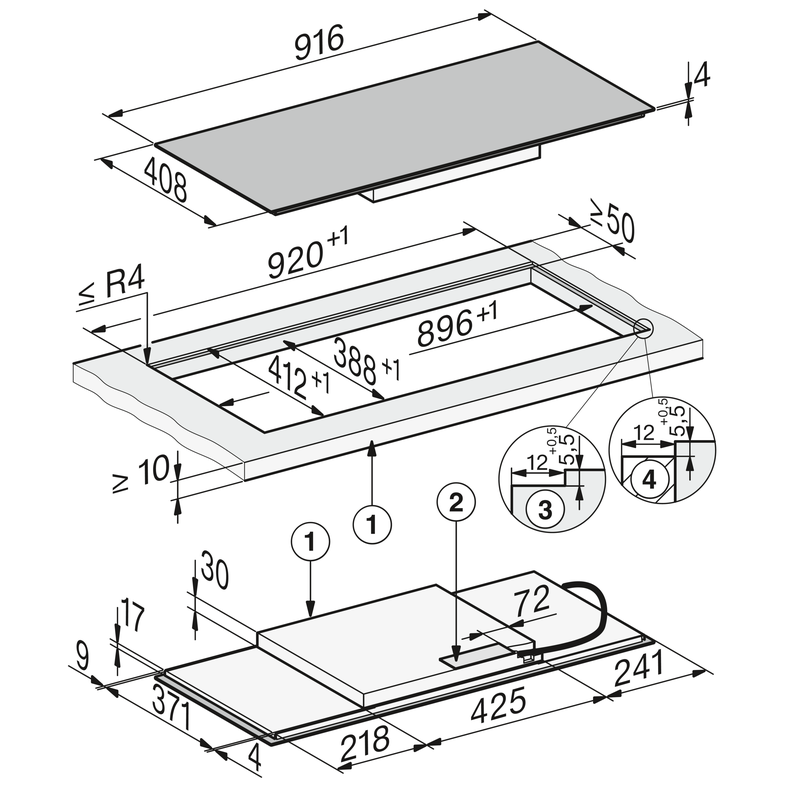 Avec des dimensions de 916 x 408 mm, cette table s’intègre dans une découpe standard ou en pose à fleur de plan. Son design panoramique optimise l’espace de cuisson.