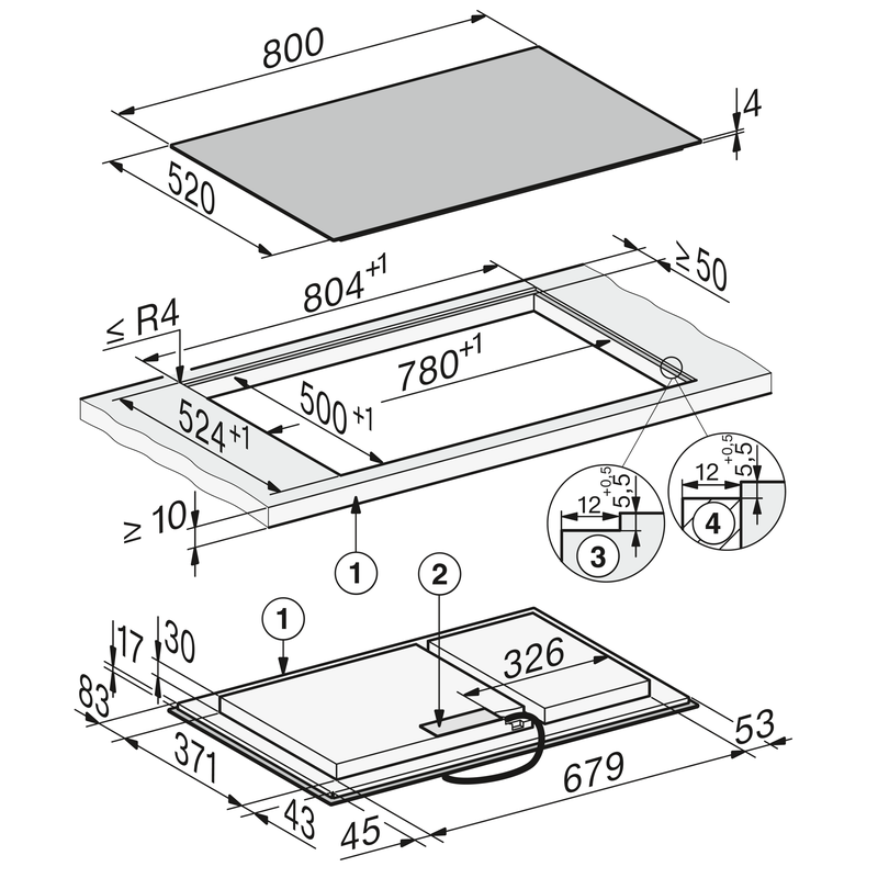 Avec des dimensions de 800 x 520 mm, cette table s’intègre dans une découpe standard de 780 x 500 mm ou en pose à fleur de plan pour un rendu design premium.
