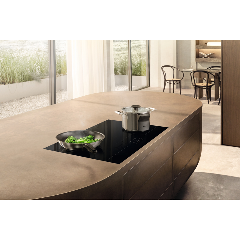 Table induction Miele offrant zone FullFlex, puissance Booster jusqu’à 3650 W et largeur 80 cm.