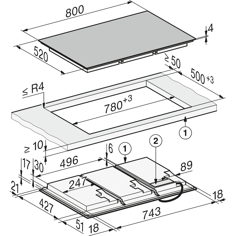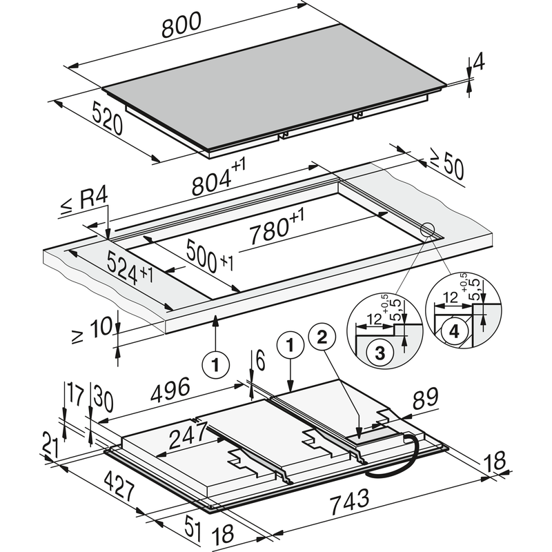 Avec des dimensions de 800 x 520 mm, cette table s’intègre dans une découpe standard de 780 x 500 mm ou en pose à fleur de plan pour une finition parfaitement intégrée.