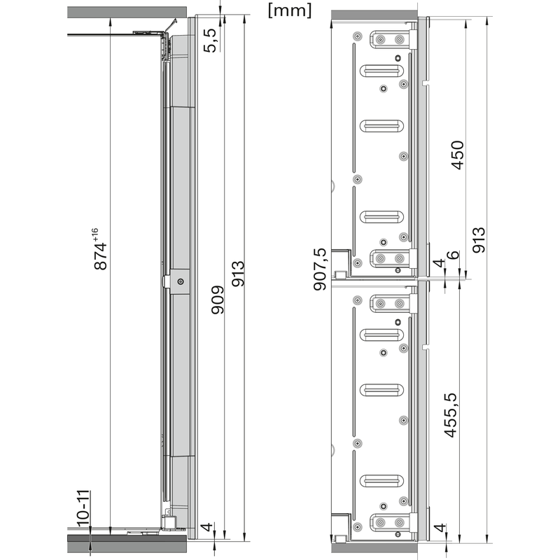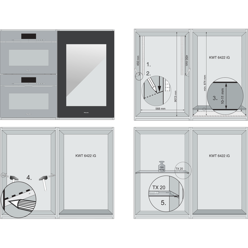 Dimensions de niche : largeur 560 à 570 mm, hauteur 874 à 890 mm, profondeur 550 mm