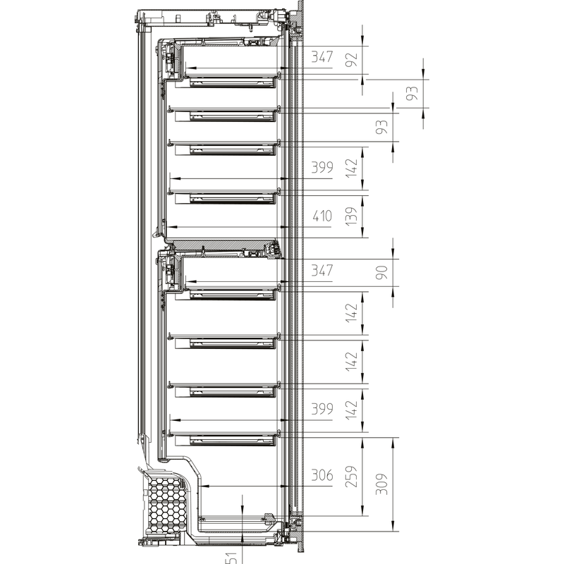 Le système FlexiFrame Plus permet d’ajuster les clayettes afin d’accueillir différentes tailles de bouteilles et d’optimiser l’espace de rangement.