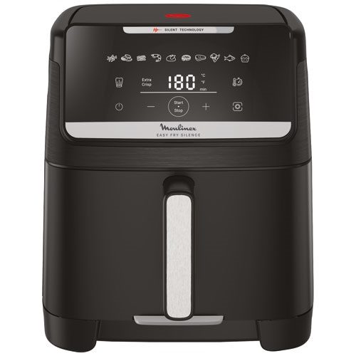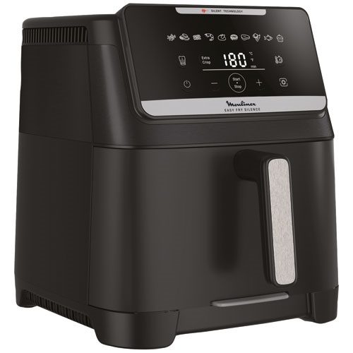 Air fryer XXL Moulinex Easy Fry Silence 7 L avec technologie Silence exclusive (43 dB), façade amovible Genius, 10 programmes automatiques, cuisson Extra Crisp et capacité jusqu’à 8 personnes. Cuisson plus rapide, jusqu’à 70 % d’énergie en moins qu’un four traditionnel.