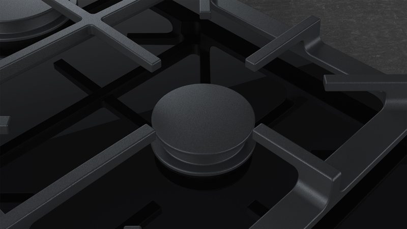 Table gaz avec surface en vitrocéramique résistante aux chocs thermiques et équipée du réglage précis FlameSelect.