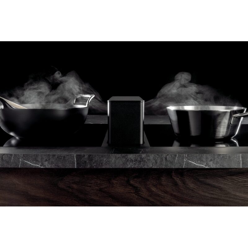 Les plaques de cuisson Novy intègrent une aspiration directement au cœur de la zone de cuisson, permettant de capter les vapeurs à la source sans hotte visible.