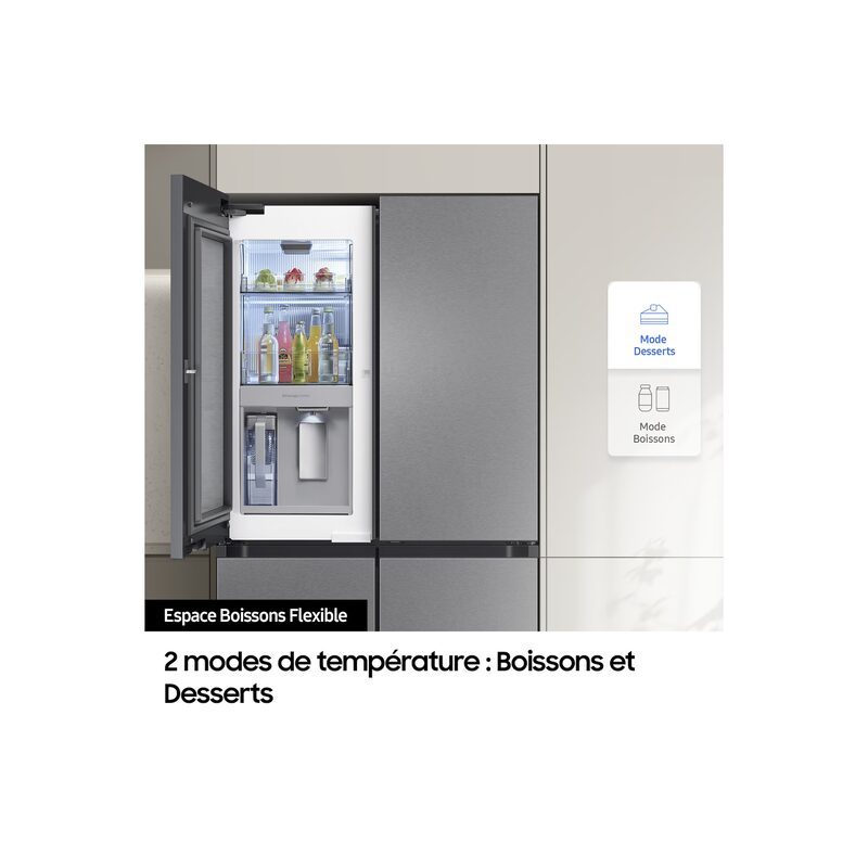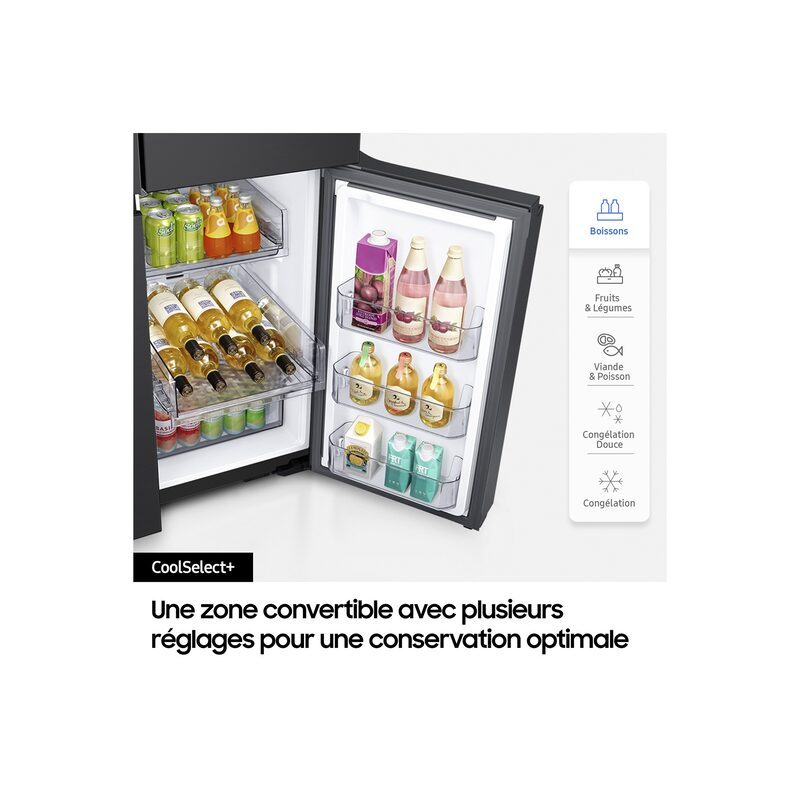 Passez au confort ultime avec un réfrigérateur intelligent et ultra modulable. Avec un volume 646 L (396 L + 250 L), le Triple Cooling™, une zone convertible multi-usages et une carafe à remplissage automatique, il offre fraîcheur, flexibilité et innovation.