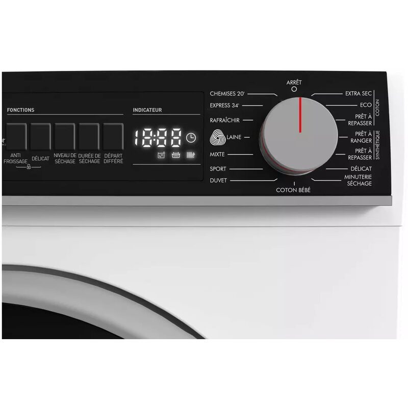 Ce modèle propose 15 programmes couvrant l’ensemble des besoins du quotidien : coton extra sec, prêt à ranger ou prêt à repasser, synthétiques, délicat, mix, coton bébé, couette, sport, ainsi que des programmes spécifiques comme Express 34 minutes, Chemises 20 minutes, rafraîchissant et rafraîchissant laine.