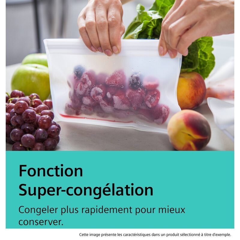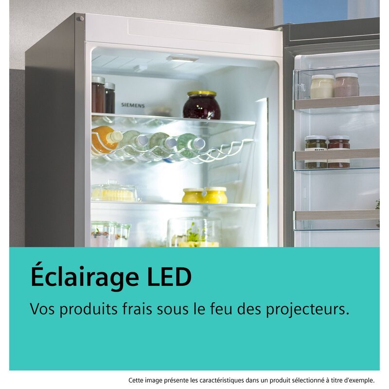 Le Siemens extraKlasse KG49NVIAG est un réfrigérateur combiné pose-libre grand format de 203 cm de hauteur et 70 cm de largeur, conçu pour offrir une capacité généreuse et une conservation maîtrisée des aliments.