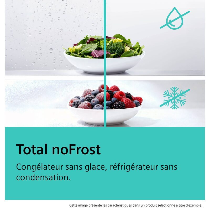 La technologie Total noFrost supprime la formation de givre dans le congélateur et évite la condensation dans le réfrigérateur.