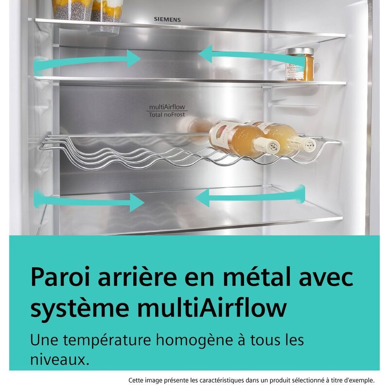 La paroi arrière en métal avec système multiAirflow répartit le froid de manière homogène sur l’ensemble des clayettes.