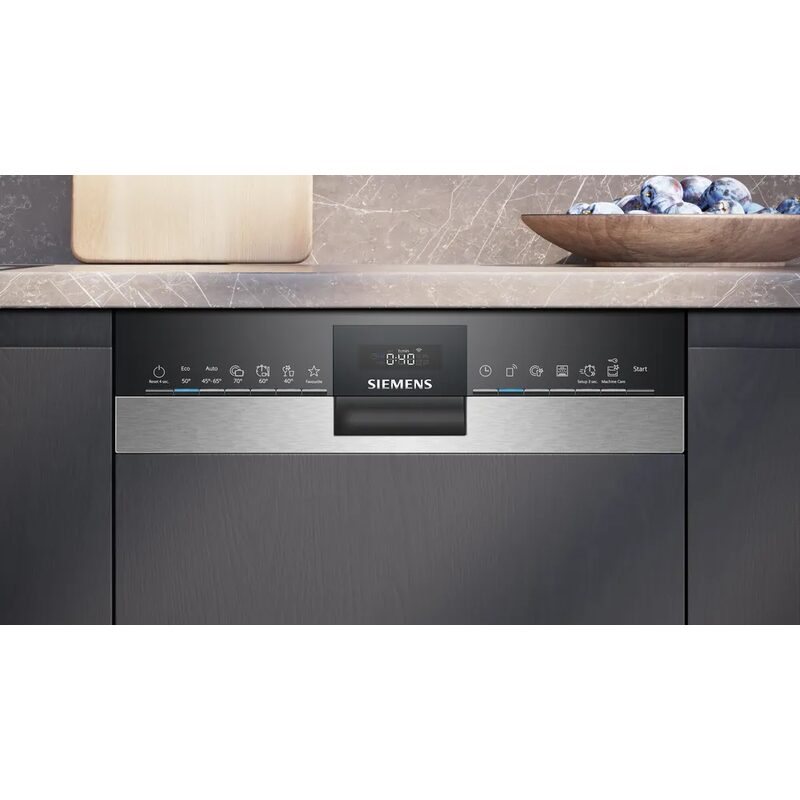 Le Siemens SR55ZS10ME est un lave-vaisselle encastrable avec bandeau apparent de 45 cm, un format particulièrement recherché et encore peu présent sur le marché. Issu de la distribution sélective ExtraKlasse, il s’adresse aux cuisines exigeantes souhaitant conjuguer intégration précise, performances avancées et finition haut de gamme.