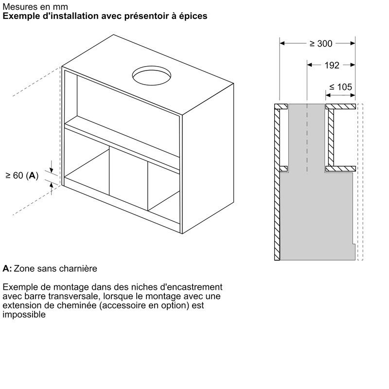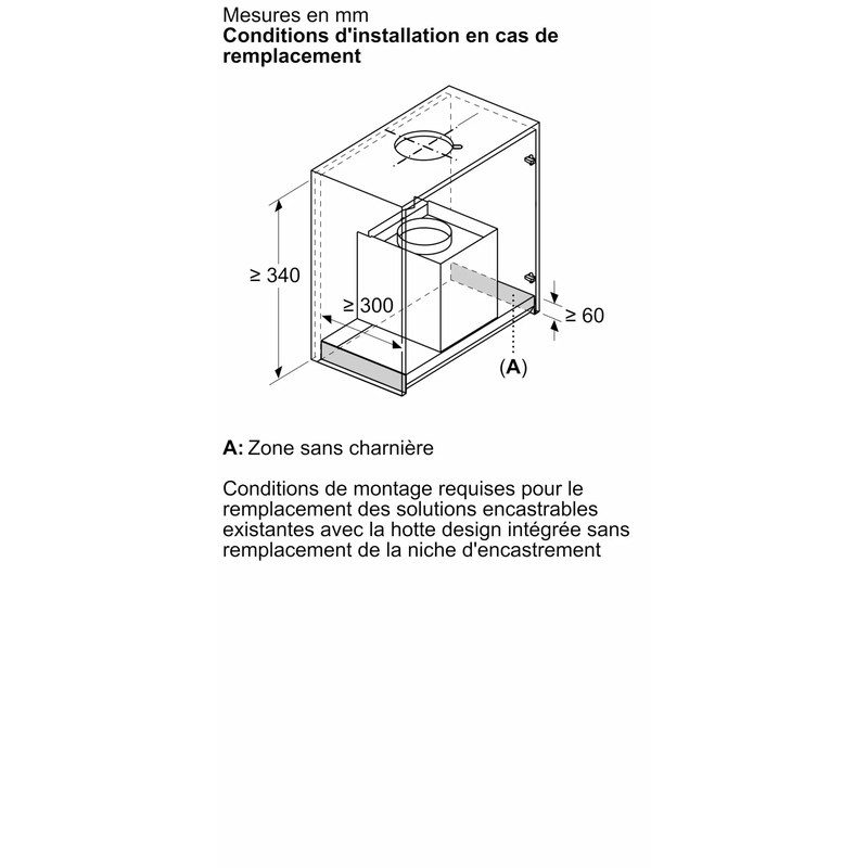 Dimensions d'encastrement : 340 × 860 × 300 mm