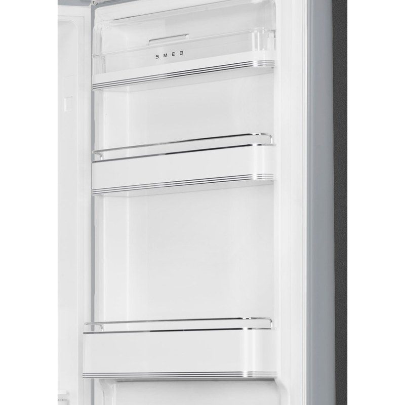 Réfrigérateur combiné pose-libre SMEG Gris métal brillant style Années 50, charnière droite.