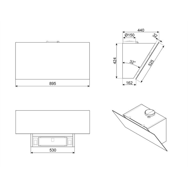SMEG KV394N Hotte murale inclinée 90 cm Verre Noir 730 m³/h